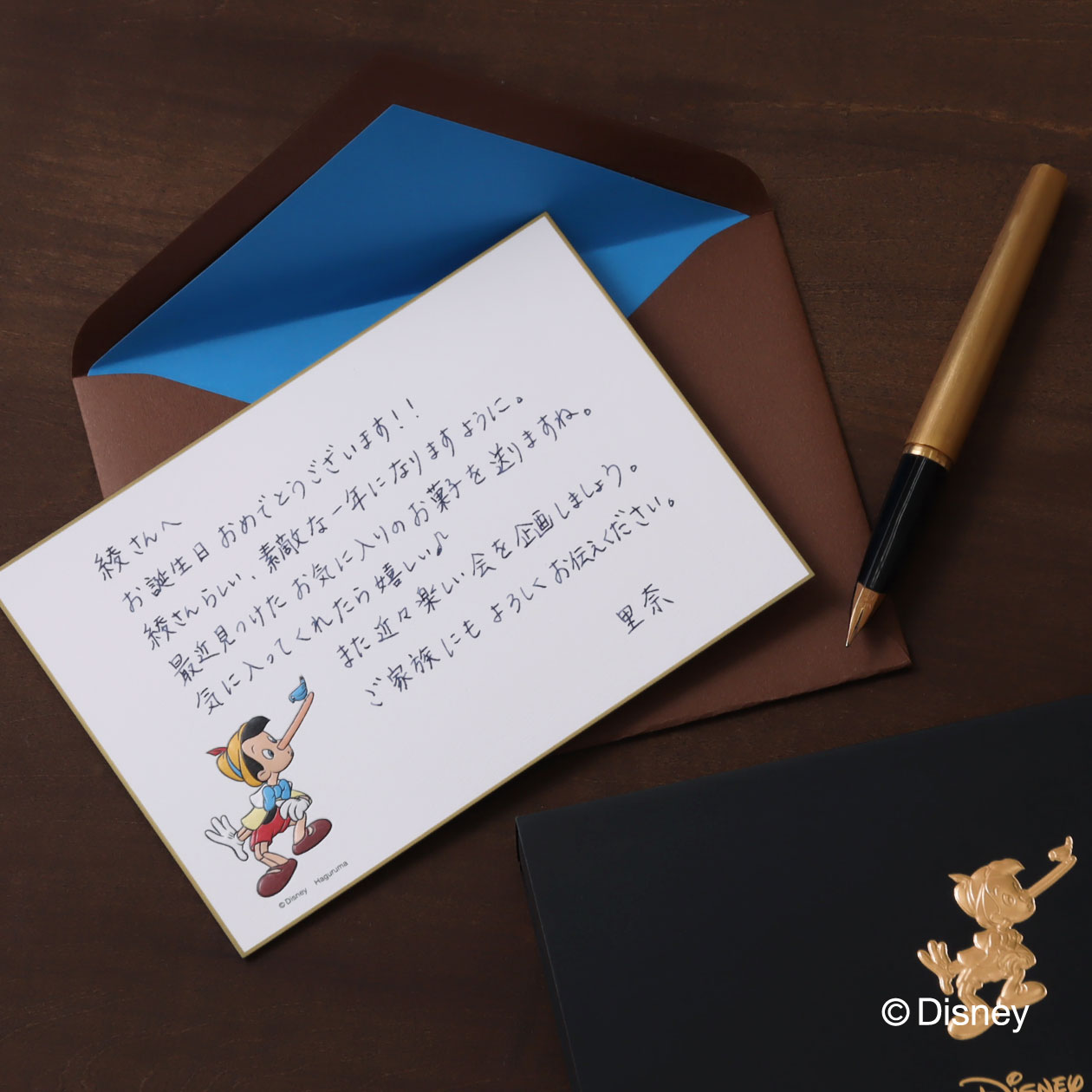 大人のための上質なステーショナリーカードセット。時を超えて愛されるディズニーキャラクターが、さりげない遊び心を添えています。ポストカードは、気軽さと丁寧さのバランスがよく書きやすいサイズ感。手書きのメッセージを温かく届けるこのカードは、お礼やお祝いの言葉を添える場面を上品に彩ります。