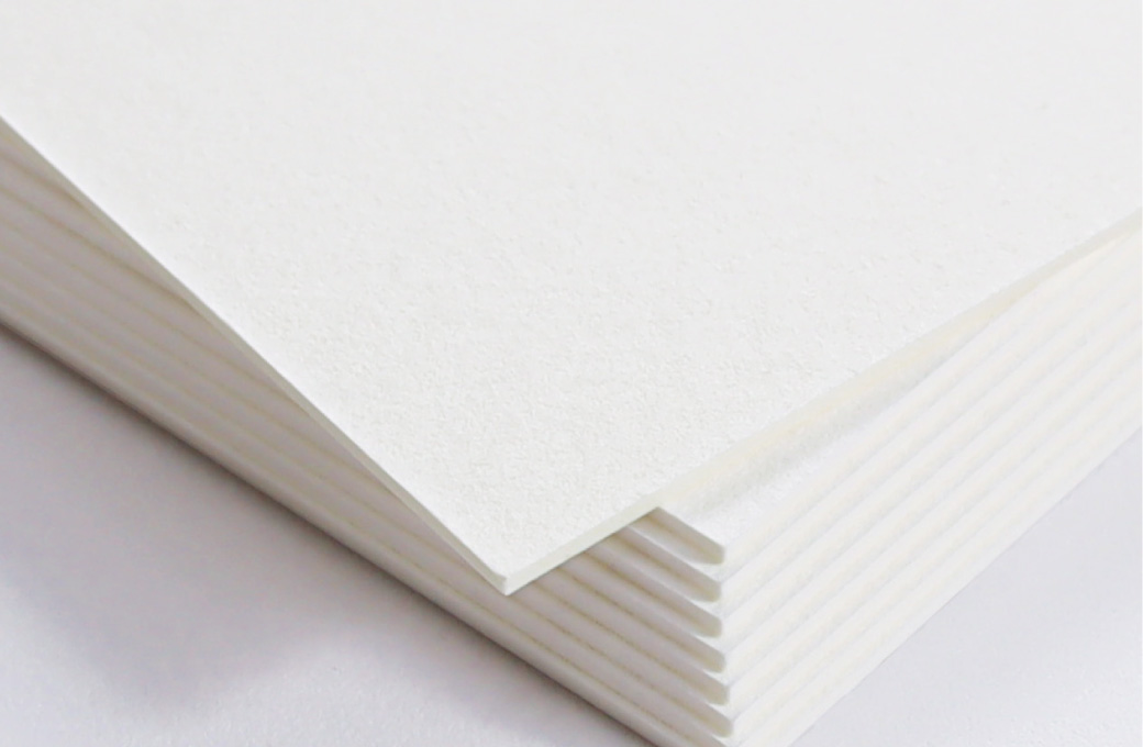 繊維がふんわりと絡み合い、しっとりとした質感と温かみのある風合いが特徴の紙です。