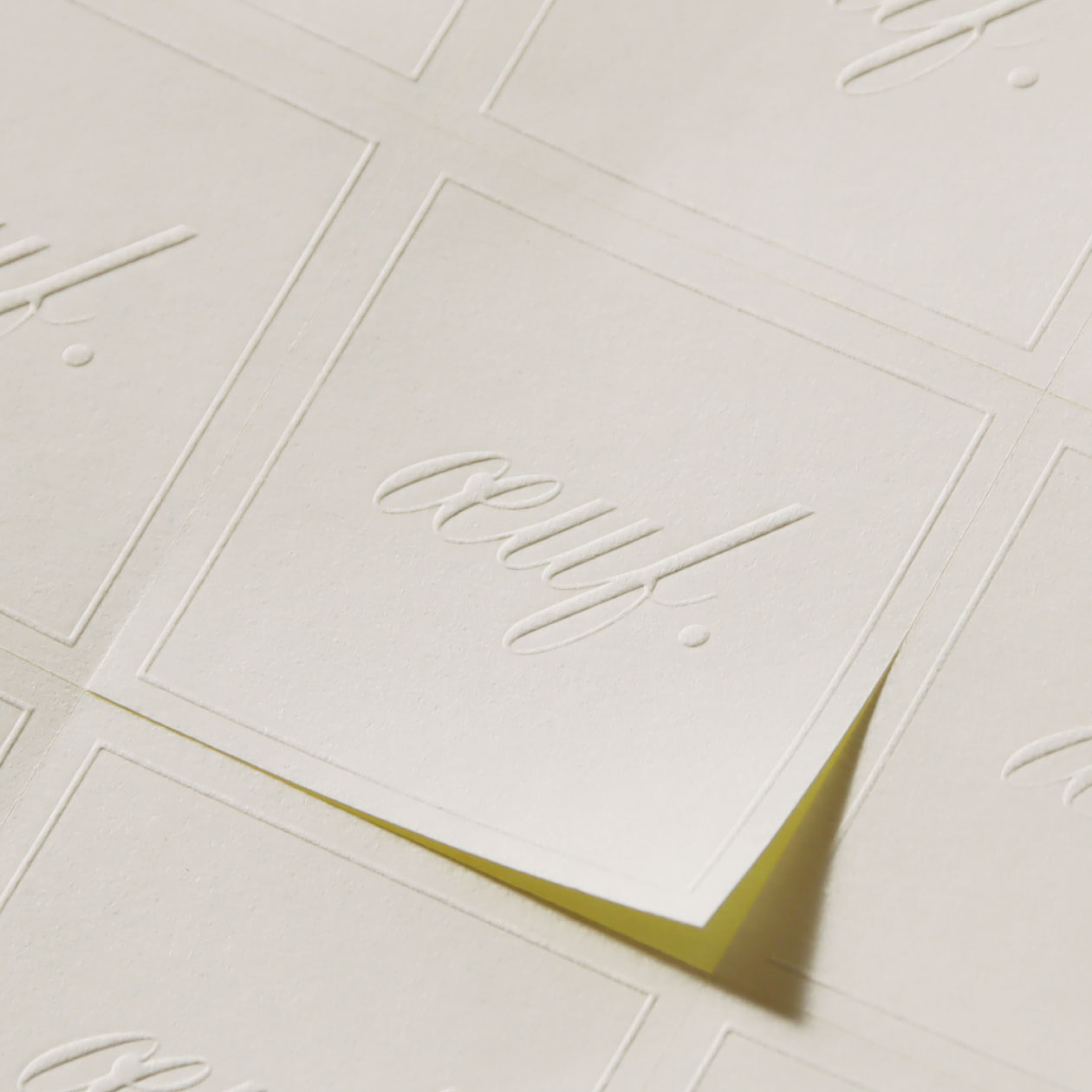スクエア形のパッケージ封筒は、160mmと220mmの2サイズをご用意。手軽に使える個性的な形のパッケージとしておすすめです。 ロウ引き加工がブランドイメージを上品に伝え、紙の強度もアップ。しっかりとした印象に仕上がります。 紙色の深みがシルバーやゴールドの印刷を引き立て、より印象的なデザインに。フタを留めるシール用素材は、強粘着の「上質紙(粗面用)」がおすすめです。