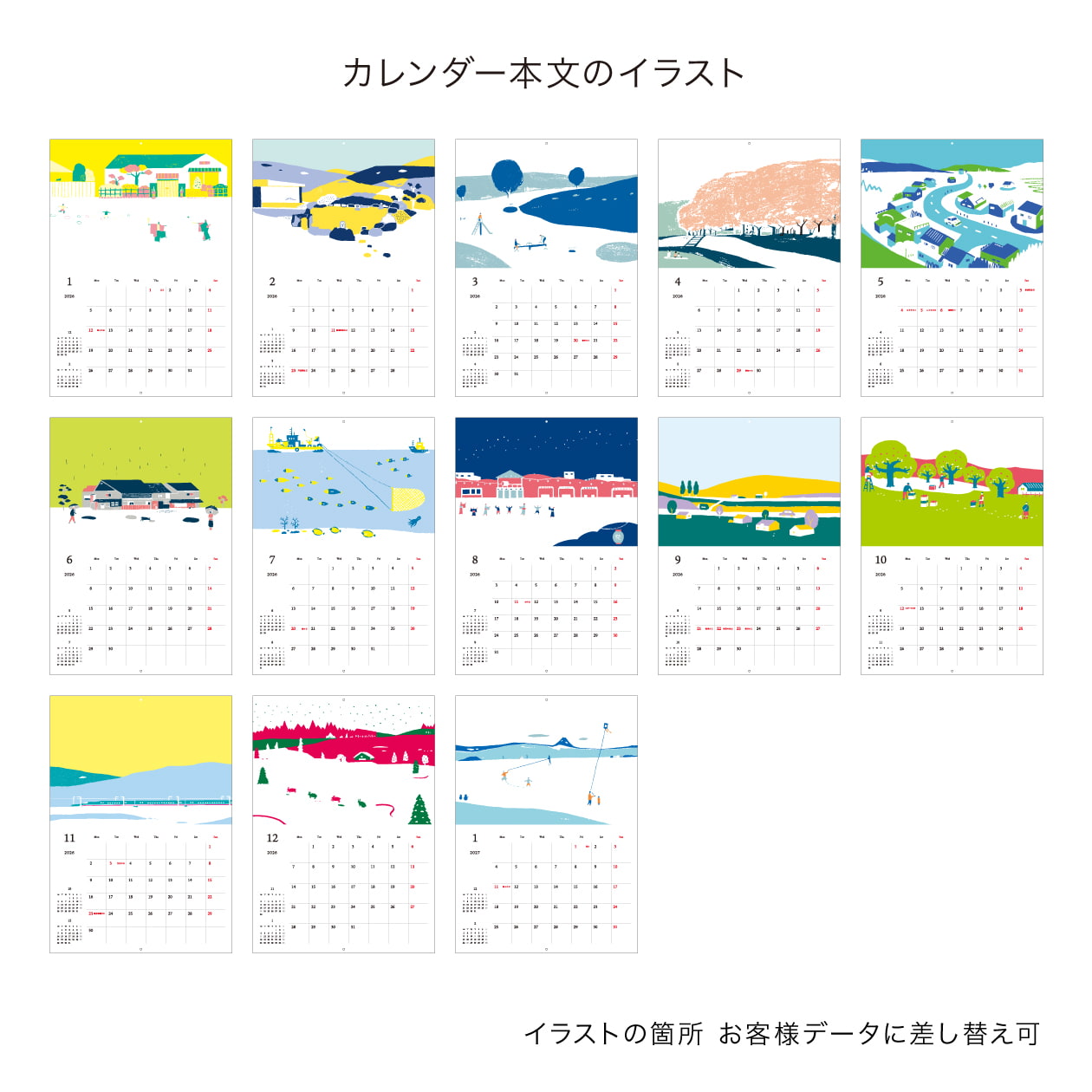 オリジナルイラストで作る中綴じカレンダー(A4)