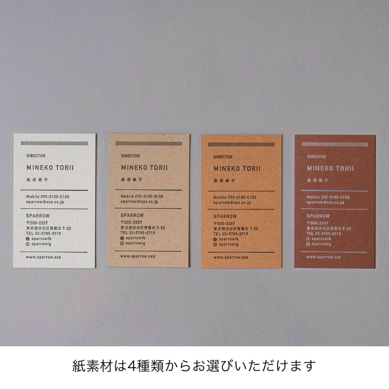 活版印刷は、スタンプで押したような凸凹した手触りで、よりレトロで温かみのある名刺に仕上がります。4種類の紙からお選びいただけます。