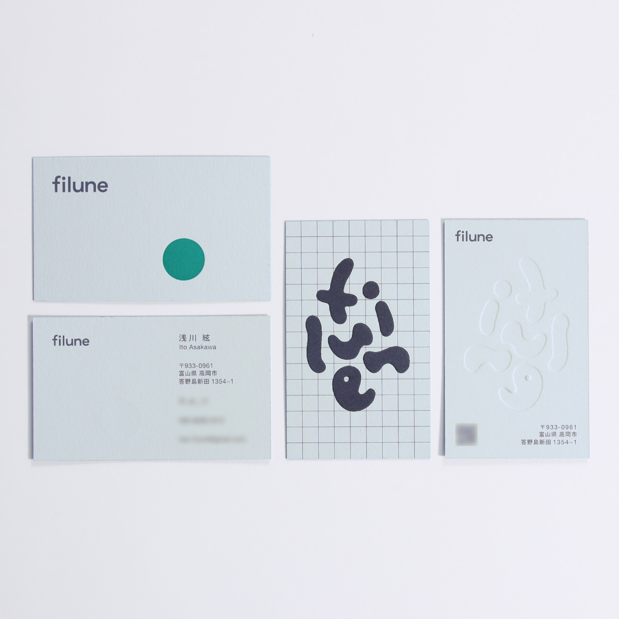 それとは対照的に名刺では、店名の由来となった「月」を表す円を活版にすることで、こちらも触って面白い名刺になっています。