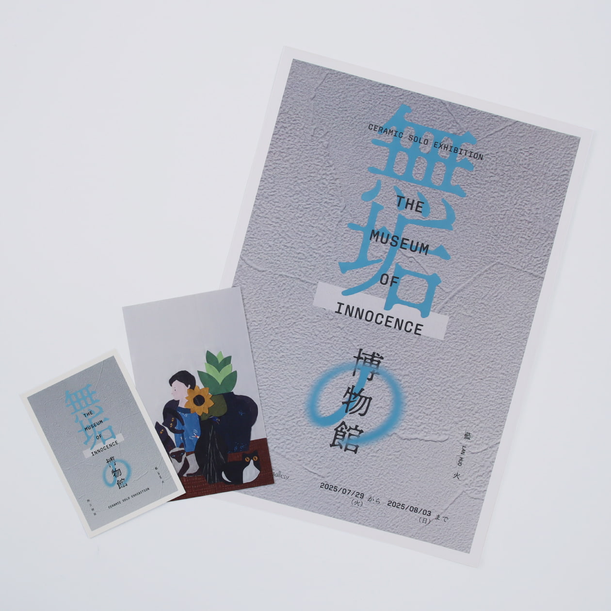 こちらは7月に大阪の楓ギャラリーで開催される藍火の陶芸個展「無垢の博物館」のための平面印刷物です。