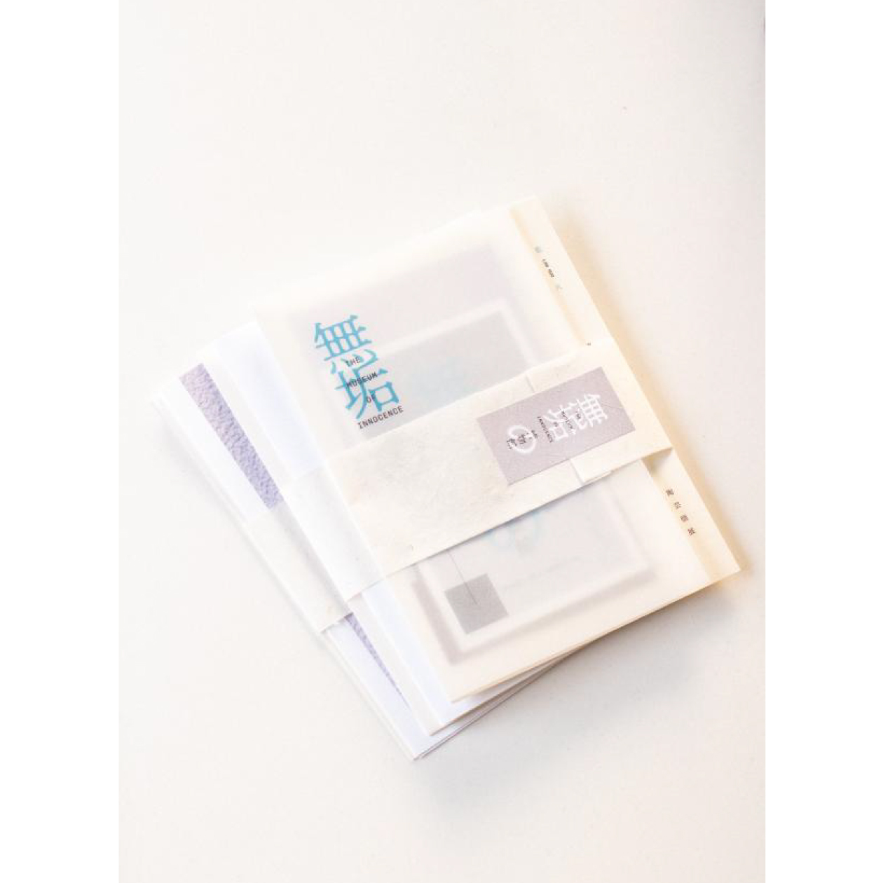 個展のテーマである「無垢」や、純粋さ・透明感を表現するために、半透明で淡い黄味がかった風合いのある用紙を使用しました。