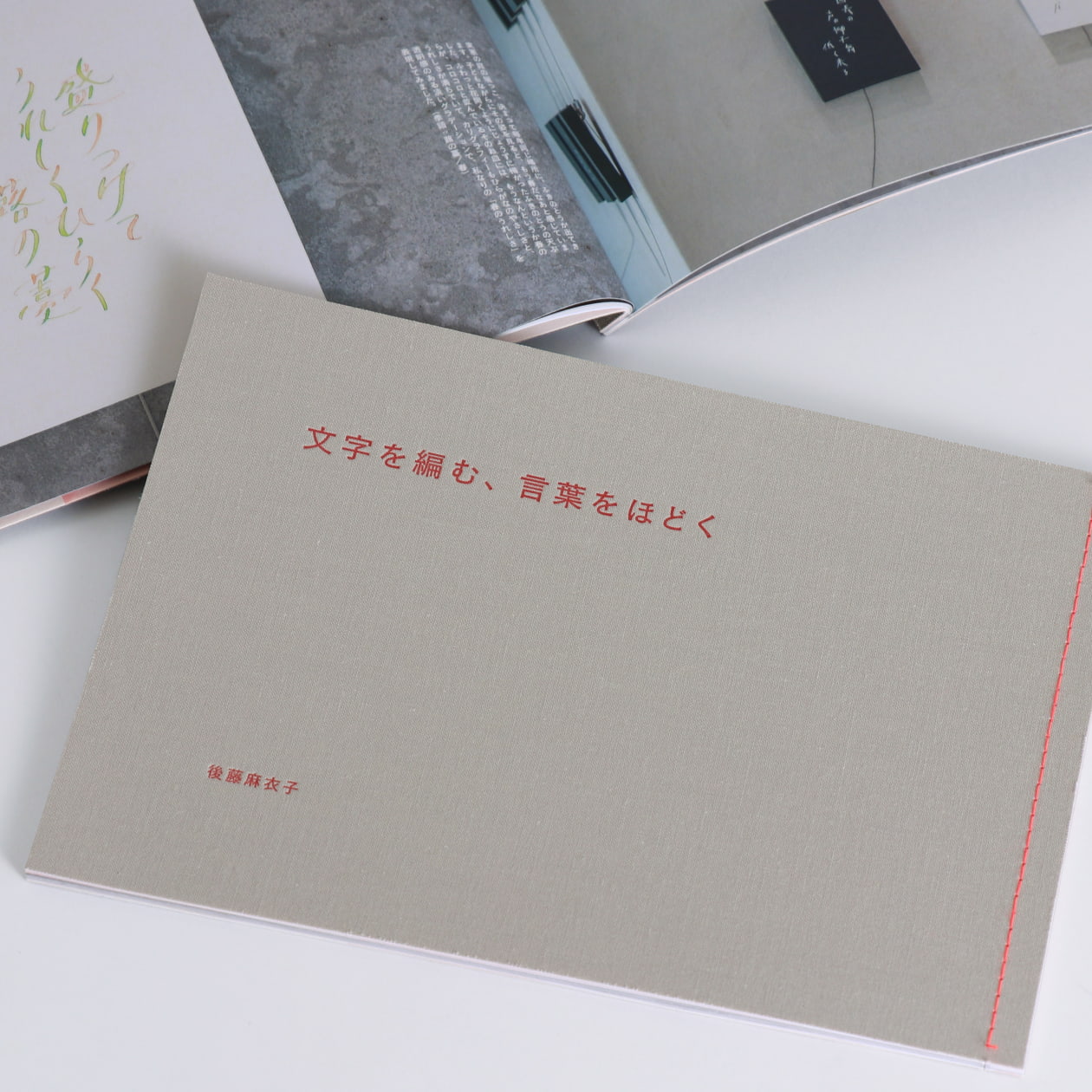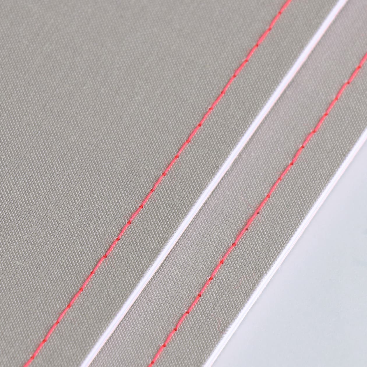 シックなグレーに、ネオンレッドの綴じ糸の相性がとてもよく、気に入っています。