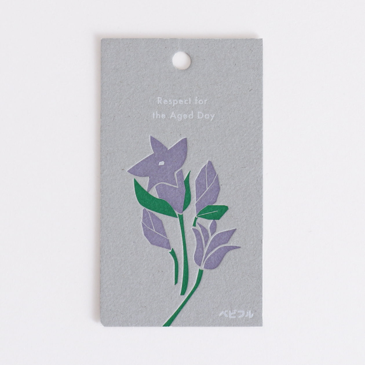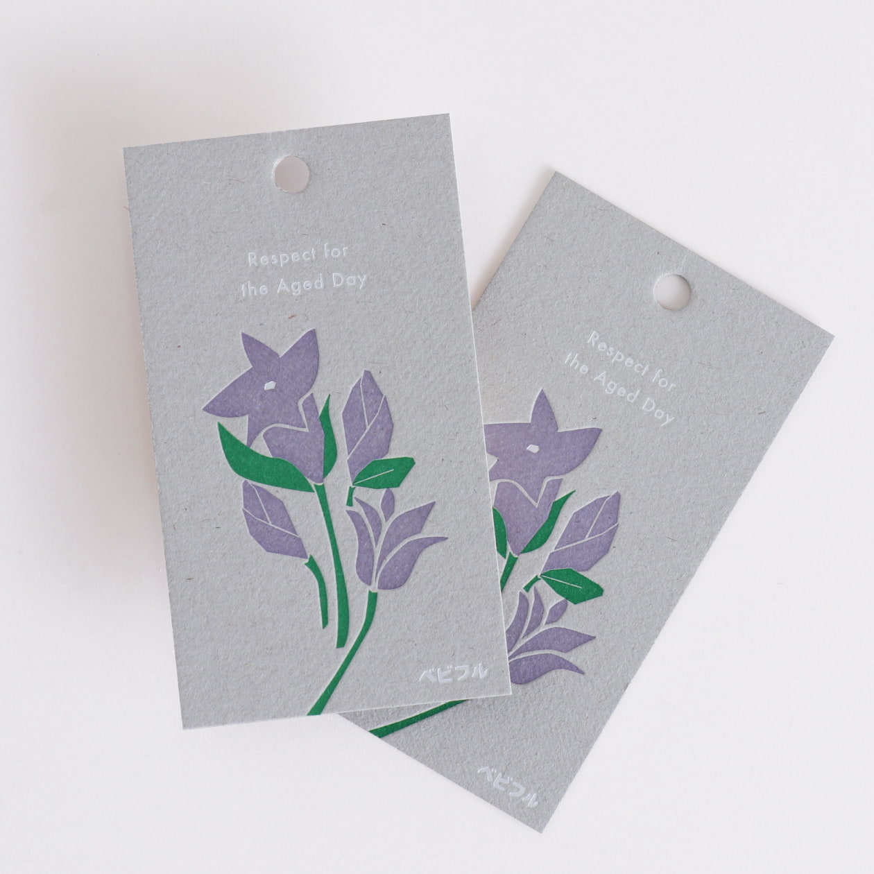長寿の願いが込められたリンドウの花をシンプルなイラストに描き起こし、あたたかみのある活版印刷で仕上げました。