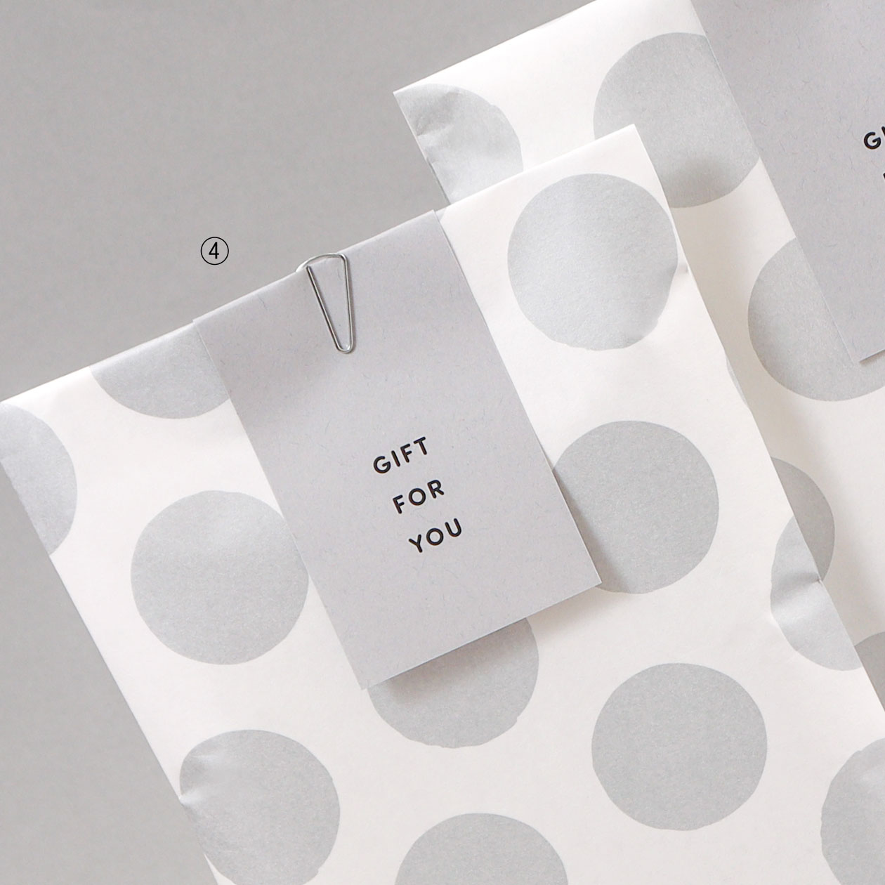 さりげなく光る大きな水玉模様が印象的な平袋。風合いのあるBasicの紙素材を使用しています。 メッセージの入ったペーパーヘッダーを添えることで、気持ちの伝わるギフトパッケージに仕上がります。