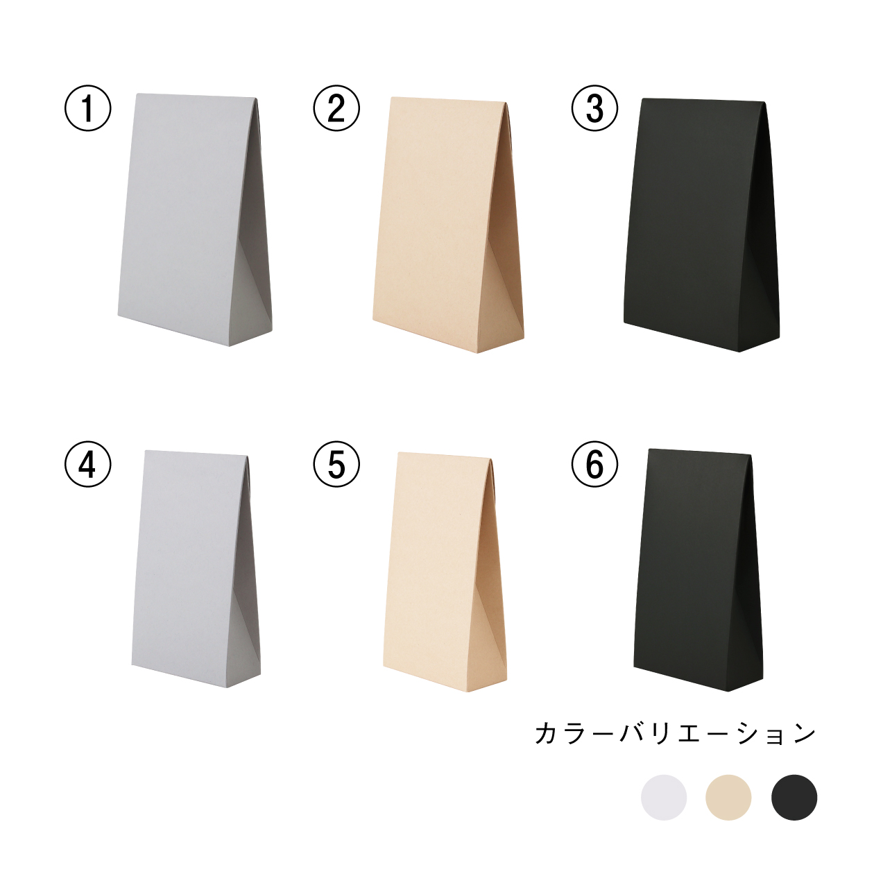 落ち着いた定番カラーの角底箱。立ててディスプレイでき、ソックスや文具、食品やお菓子など幅広い用途に対応。デザインシールを添えるだけで、無地のパッケージがおしゃれに引き立ちます。