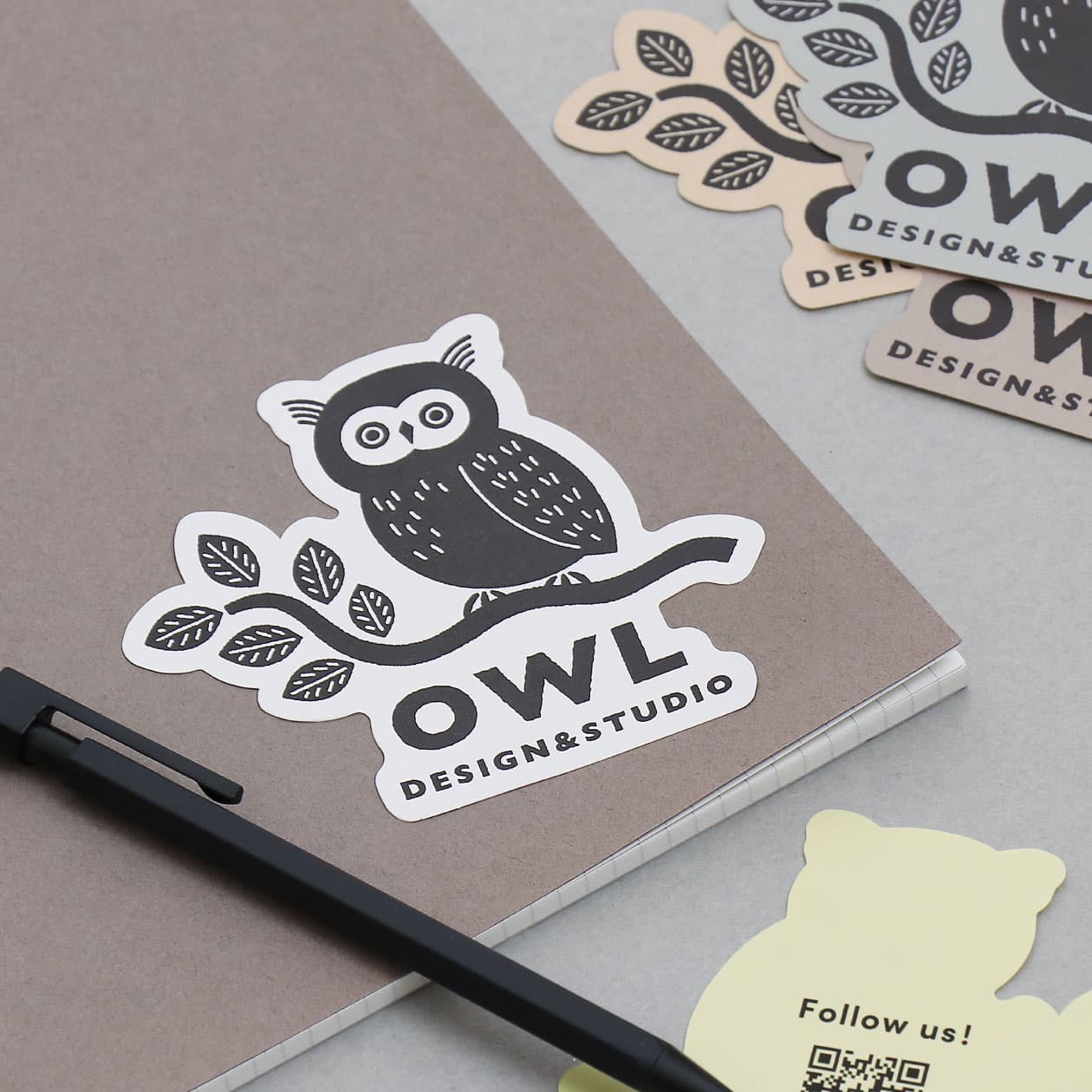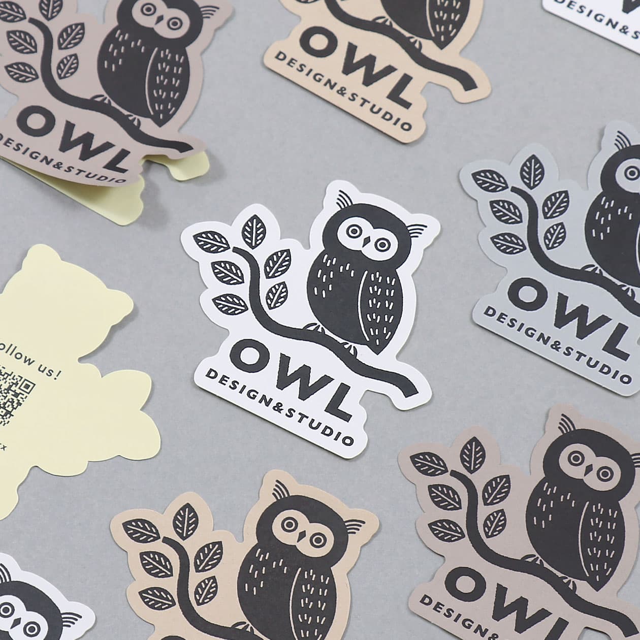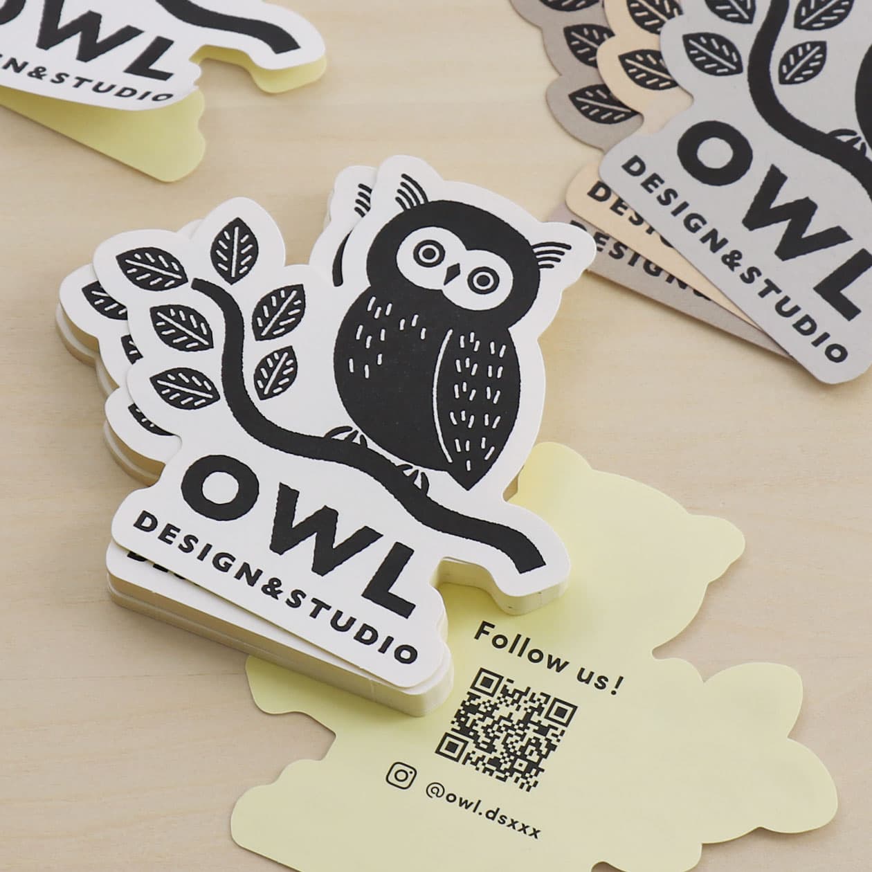 風合いのある紙に活版印刷を施した屋内用のダイカットシール。BasicやColorsの紙素材にブラック1色で表現したイラストが、ステッカーとしての存在感を引き立てます。裏面にはテキストやQRコードを入れることができ、販促ツールとしても活用できます。