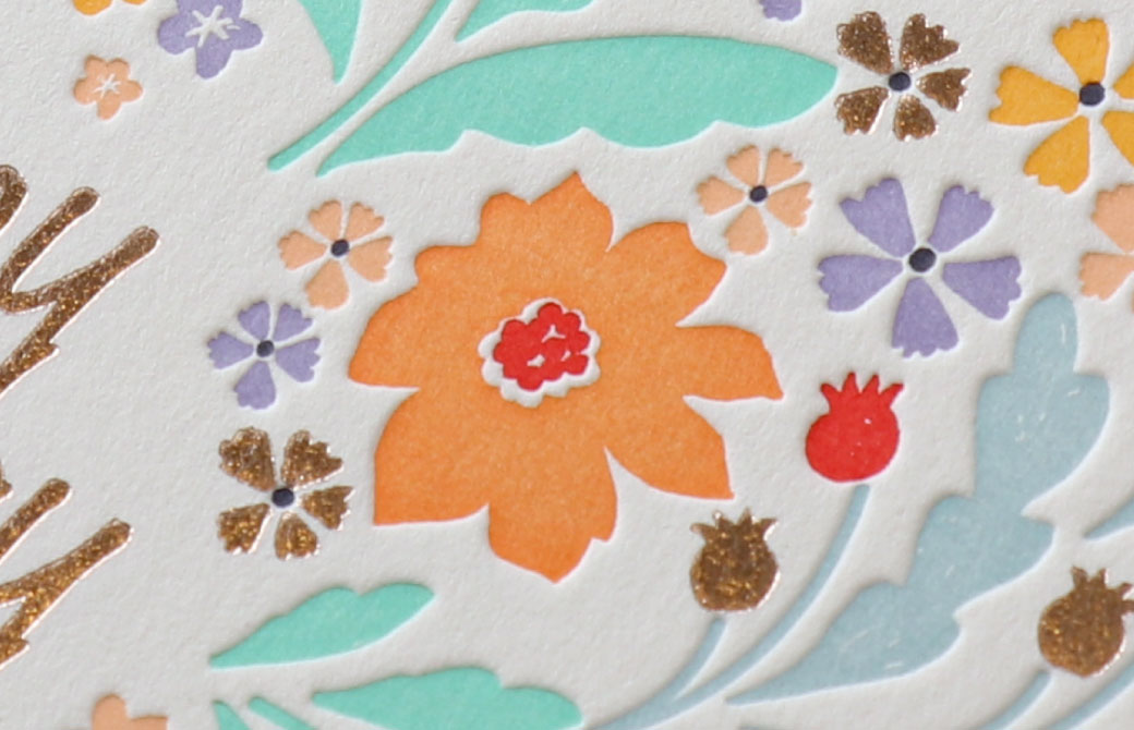1色ずつ刷り重ねた色鮮やかな表現と、手触りの温かさが感じられるカードをお作りいただけます。 -