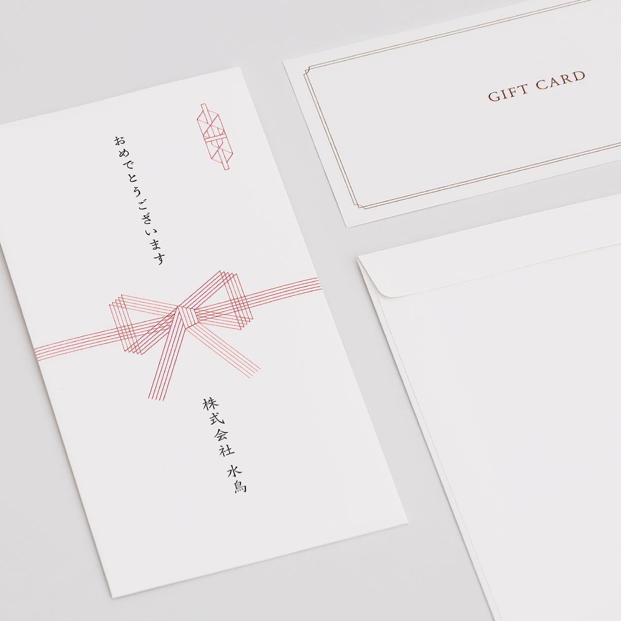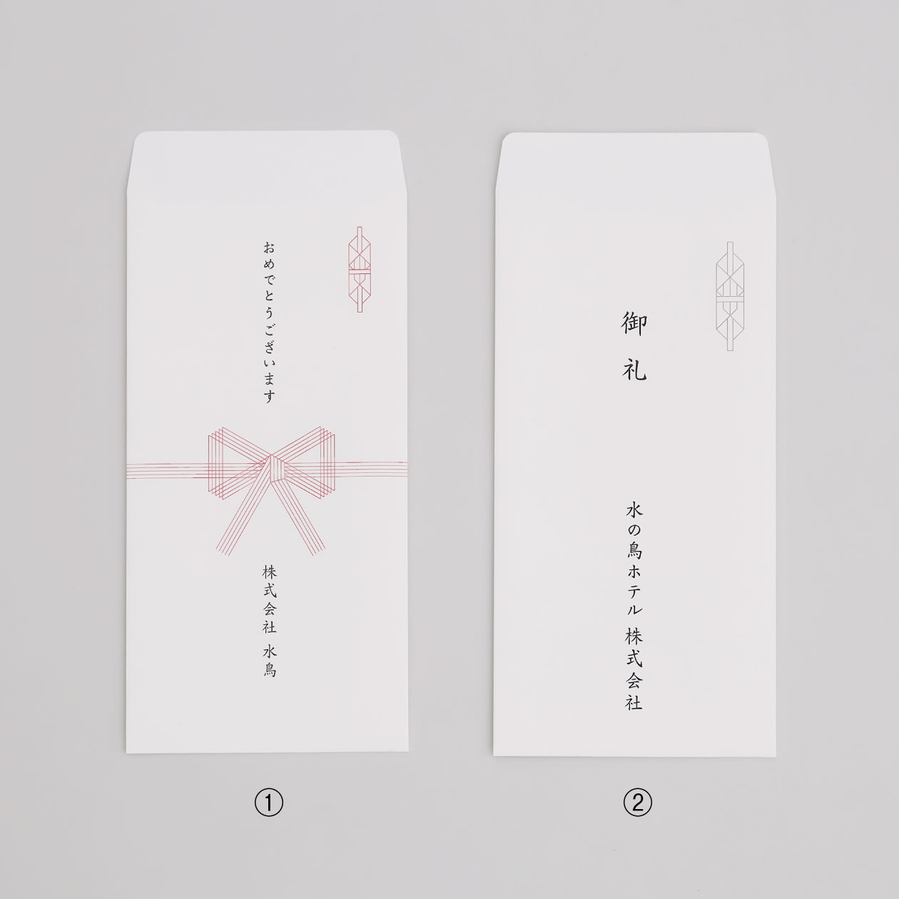 企業からお渡しするのし袋。お札を折らずに入れられるサイズです。水引や熨斗のついたデザインで、お祝い、お年賀、お中元など様々なシーンでお使いいただけます。デザインテンプレートを使用して、簡単にのし袋を作ることができます。