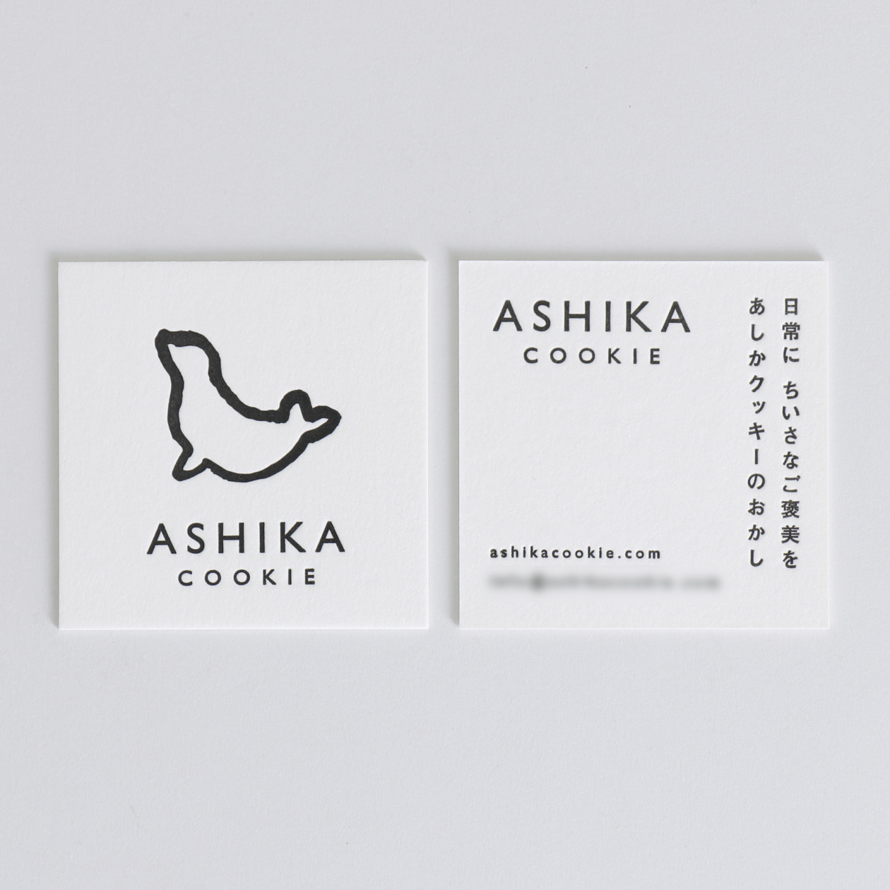 また、ロゴタイプも「ASHIKA」と「COOKIE」でサイズにメリハリをつけて全体のバランスを整えました。