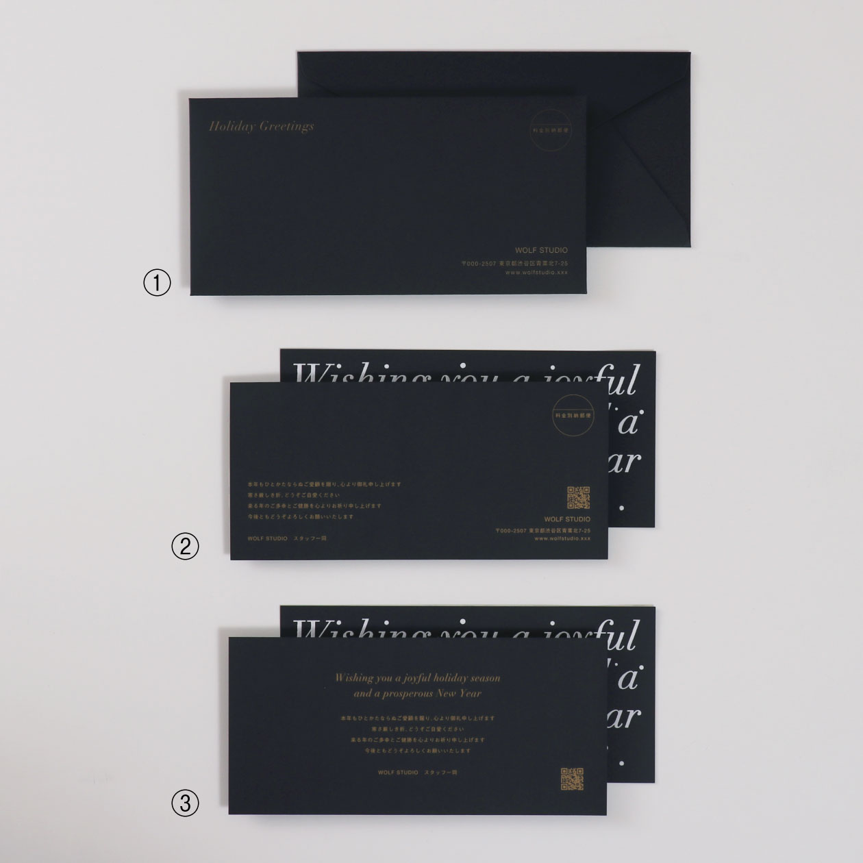 同じ色合いの封筒パッケージに入れることで、特別な年末年始のご挨拶状に仕上がります。